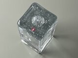 こちらは一辺6cm、高さ13cm程の面取りされた四角柱に、太さ2cm程のキャンドルを立ててご使用いただけるよう、天面にキャンドル穴がくりぬかれています。