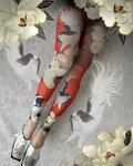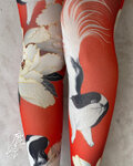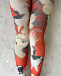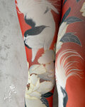 背景には深みのあるオレンジを配し、あたたかみのある印象の中に、柄のコントラストが美しく映える配色です。