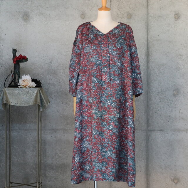 絞りのワンピース ドロップショルダー ゆったり目 L〜 フリーサイズ 着物リメイク