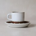 カップの縁にも同じ赤茶色のラインが施され、全体をほどよく引き締めています。
