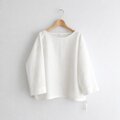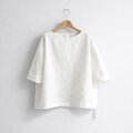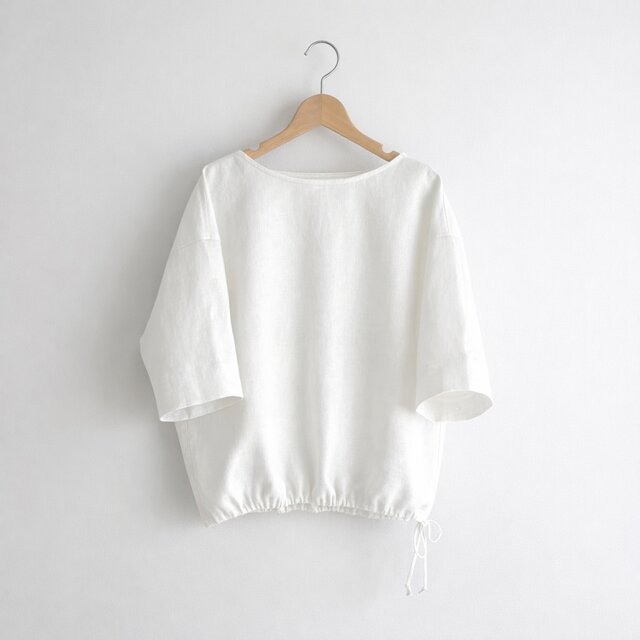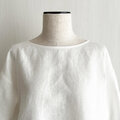 選べる袖丈 ボートネック クロップド丈 裾ドロスト プルオーバー|リネン100%_White
