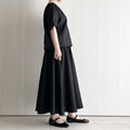 同素材のギャザーフレアスカートと合わせれば、セットアップとしても着用可能。ブラウジングワンピースのような雰囲気もお楽しみいただける一枚です。
