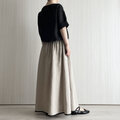 ▼丈が選べる ギャザーフレア ロングスカート|リネン100%_Black