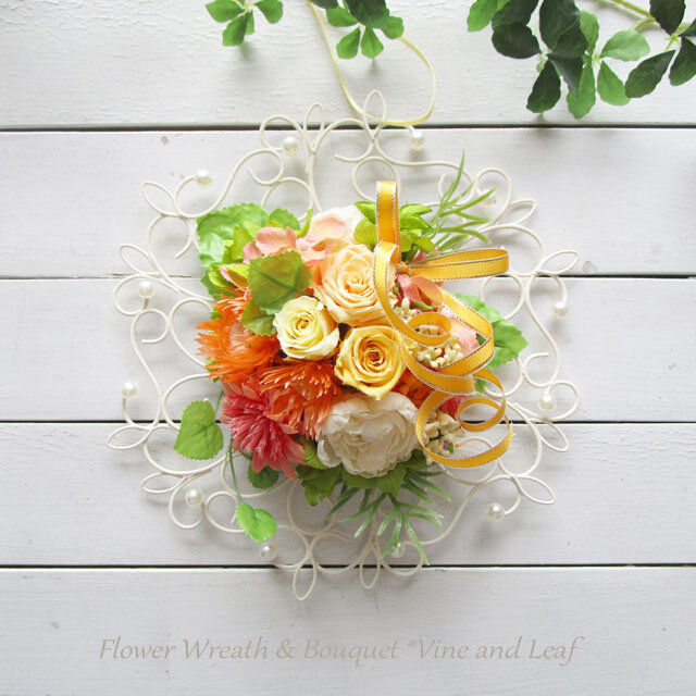 ビタミンカラーのアイアンスワッグ(元気が出るイエローオレンジ)~プリザーブドフラワー~[p20261018]