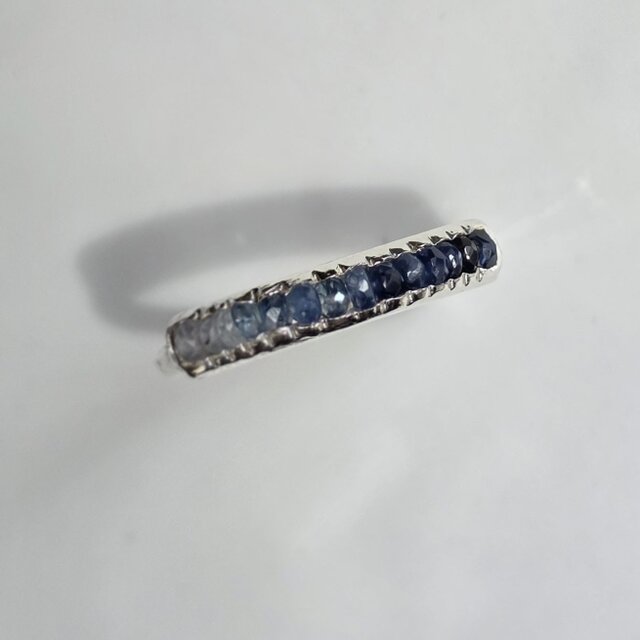 カラーサファイア グラデーション 深いブルー~クリア14pcs シルバーSV925リング