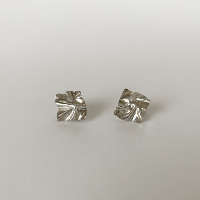 銀を紙のように優しくくしゅっと寄せた、繊細な表情のイヤリングです。