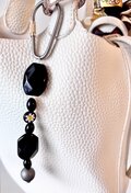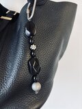 ブラック系大粒ビーズを贅沢に組み合わせて作ったバッグチャームです。