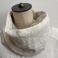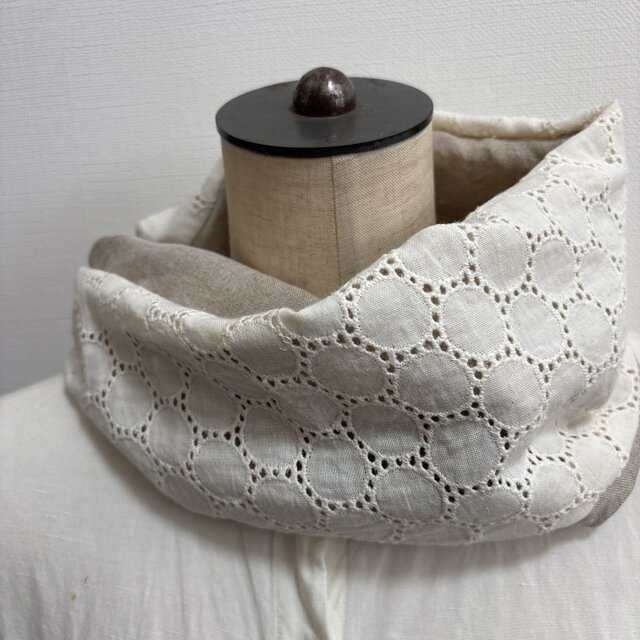 綿刺繍とリネン生地でおつくりしたひねりを入れたスヌードです。