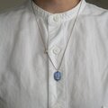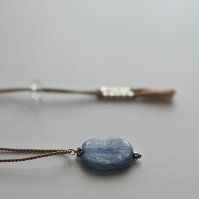 シルキーな輝きのカイヤナイトと、シルバービーズを使用したシルクコードネックレスです。