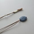 カイヤナイトは、オーバル型で厚みは2.5mm。特有の光の筋が石に奥行きを与えています。