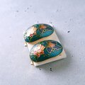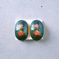 セルリアンブルーをベースにフラワーと蝶が描かれた七宝焼のヴィンテージイヤリングです。