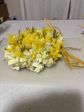 正面から。東京堂で買ったアリスハイドレンジアとエレノアミモザバンドルを使っています