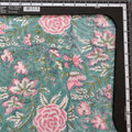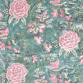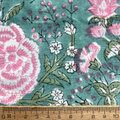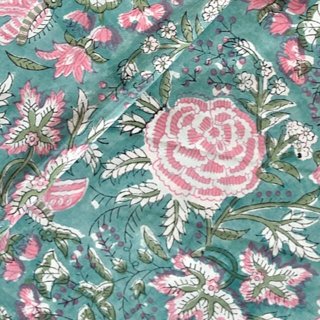 インド ブロックプリント生地 [50cm単位切売] サンガネリ バラと蝶々 on ターコイズブルー ローズ IF0510