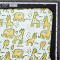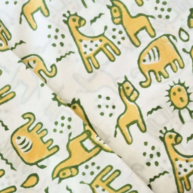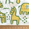 インド ブロックプリント生地 [50cm単位切売] サンガネリ 動物 イエローXグリーン 馬 象 きりん IF0514