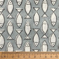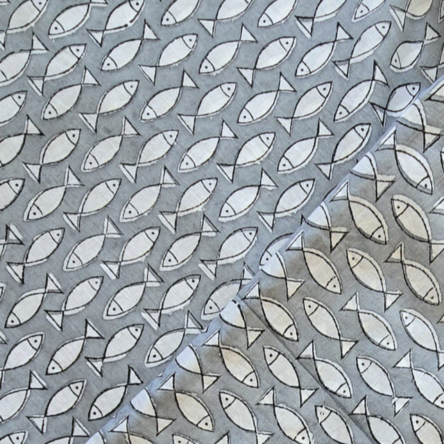 インド ブロックプリント生地 [50cm単位切売] サンガネリ 白いさかな on グレー 魚 フィッシュ IF0513