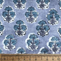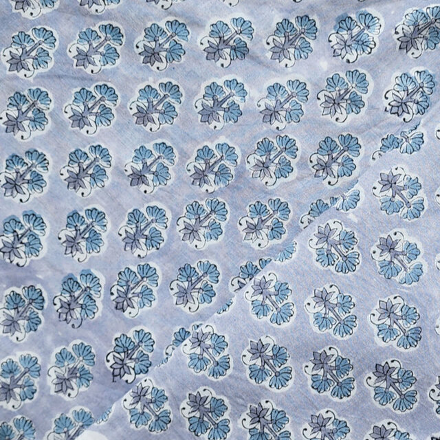 インド ブロックプリント生地 [50cm単位切売] サンガネリ ブルーフラワー on サックスブルーIF0517