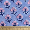 インド ブロックプリント生地 [50cm単位切売] サンガネリ ピンクフラワー on サックスブルーIF0525