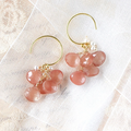 桜雫のブーケピアス|アンデシン×淡水パール 14kgf・春色ピーチピンク