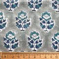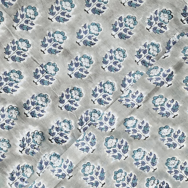 インド ブロックプリント生地 [50cm単位切売] サンガネリ ブルーフラワー on グレー IF0521