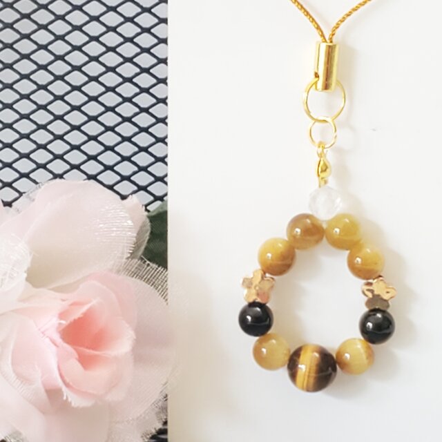 【タイガーアイとモリオンの最強お守りストラップ】天然石*厄災よけ*成功*仕事*金運*天然石ストラップ*天然石アクセサリー