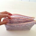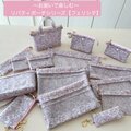同じリバティ【フェリシテ】で、さまざまなサイズ・形のポーチをご用意しました。