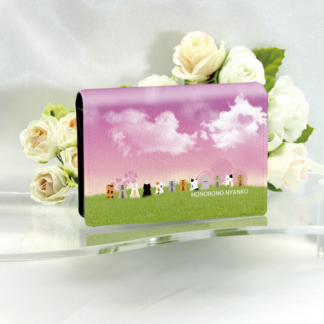 名刺ケース 名刺入れ プレゼント ギフト 緑 草原 ピンク 雲 ハート 恋 空 猫 白猫 三毛猫 黒猫