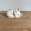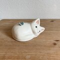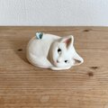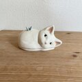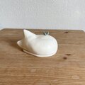陶芸作品です。 猫の背にちょうちょを載せました。