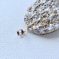 下部につけた揺れるビーズは、紫外線の種類でお色が変わるビーズをつけました。光が当たると紫色に、暗い室内では青色に見えます。四角さの角に丸みのある形に、ブラウンが混じるビーズです。