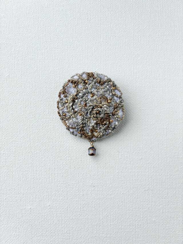 ブラウン×グレー/ 落ち着きと大人らしさを感じる/ ニュアンスカラーが優しい手刺繍丸ブローチ