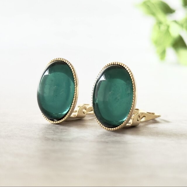 チェコガラス グリーン ピアス/イヤリング やわらかな深緑