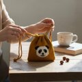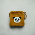 シェットランドウール100%の毛糸でプリンを編み込んだ巾着です。