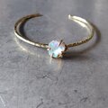遊色が美しく浮かぶエチオピアオパールの原石を真鍮バングルに仕立てました。
