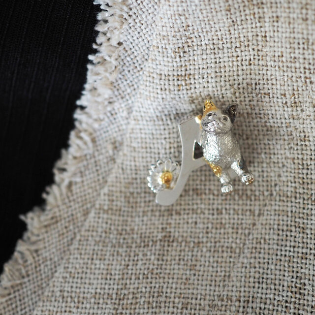 ブローチ時:金具を外すことで、服のラインにピタッと沿う美しいシルエットに。