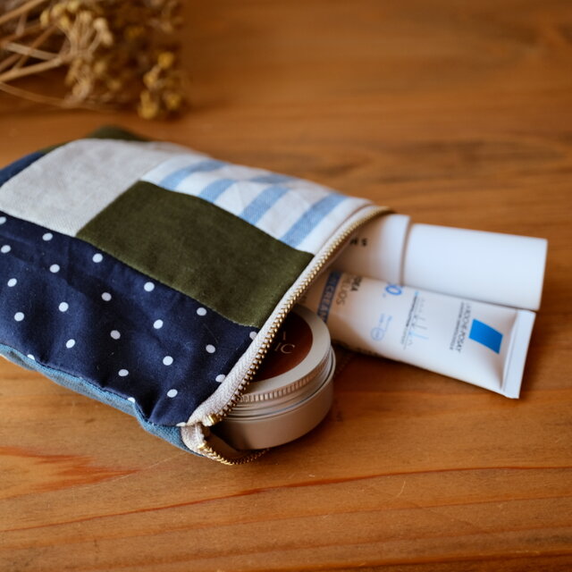 パッチワークのファスナーポーチです。