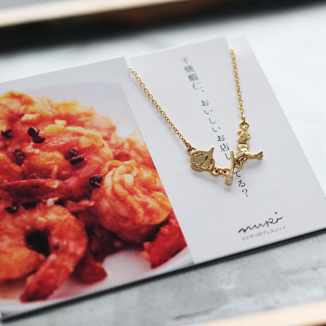 一見、えびや、長ネギ、ニンニク、食材がつなぐブレスレット。