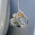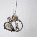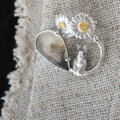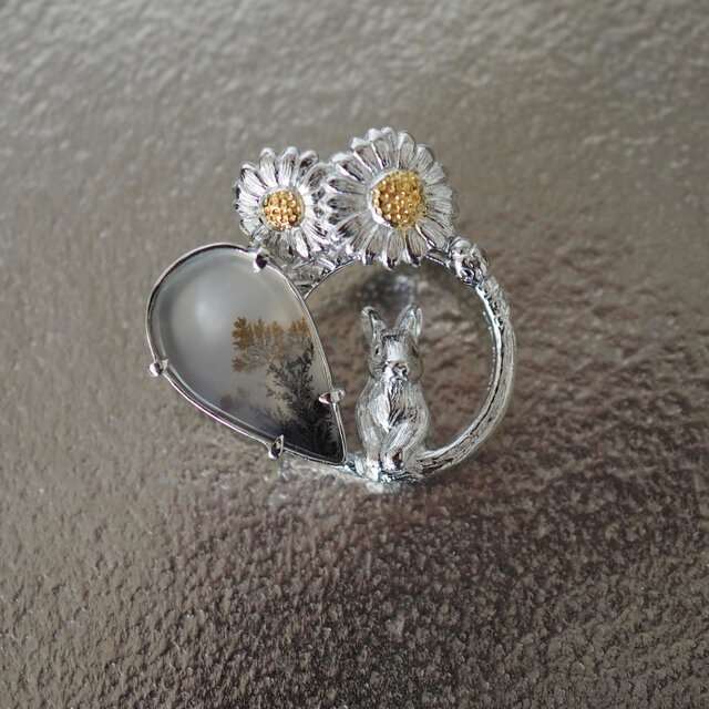 【2way】2輪のデイジーとうさぎの庭園 ブローチペンダントトップ(デンドリティックアゲート)