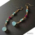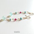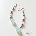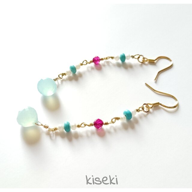 爽やかなパステルブルーのシーブルーカルセドニーにルビーとターコイズ、淡水パールをあしらったポップで涼しげなデザインに仕上げました☆