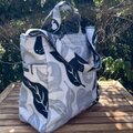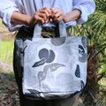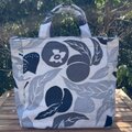 横浜の伝統技術である捺染(なっせん)製法を使って型染めをしたオリジナルテキスタイルを使い、職人の手によって一点ずつ手縫いで縫製しています。