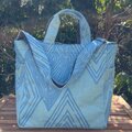 横浜の伝統技術である捺染(なっせん)製法を使って型染めをしたオリジナルテキスタイルを使い、職人の手によって一点ずつ手縫いで縫製しています。