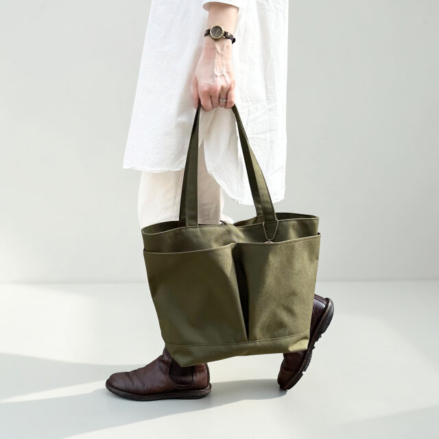 A4サイズも入る撥水加工ナイロントートバッグ MARKT:カーキ<受注製作>