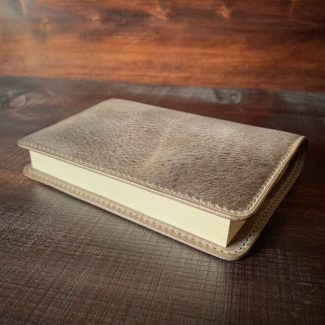 イタリアの良質なベジタブルタンニンなめし革を使用して作製しました、文庫本サイズ(148〜152mm × 105mm)のレザーブックカバーです。