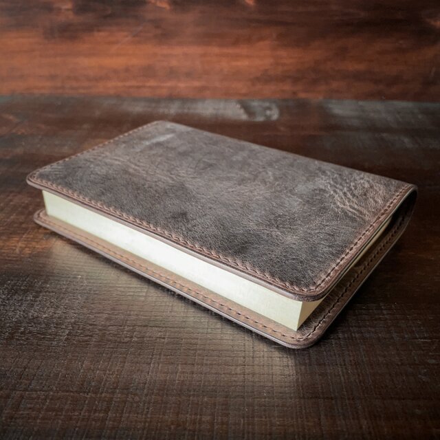 イタリアの良質なベジタブルタンニンなめし革を使用して作製しました、文庫本サイズ(148〜152mm × 105mm)のレザーブックカバーです。