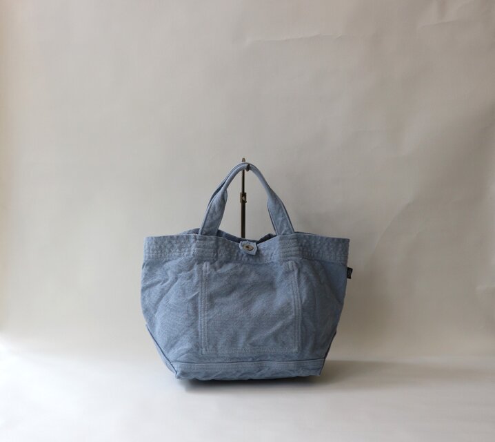 「ちょっとそこまで♪」気軽に持てて、たくさん入るキャンバスの手提げバッグ。デザインのポイントのステッチとドーナツボタンで、ラフになり過ぎずおしゃれにきまります。