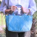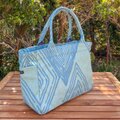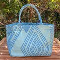 横浜の伝統技術である捺染(なっせん)製法を使って型染めをしたオリジナルテキスタイルを使い、職人の手によって一点ずつ手縫いで縫製しています。