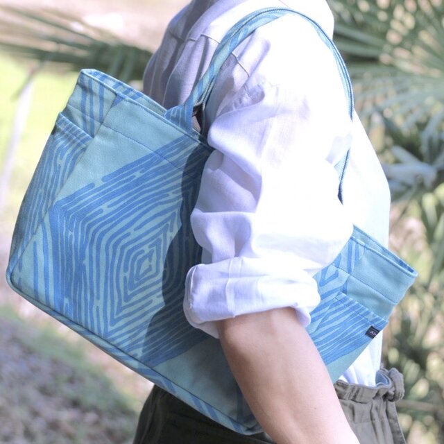 トートバッグ(サイドポケットS)「ミチ」_育てよう_ひし柄