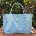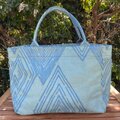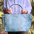 横浜の伝統技術である捺染(なっせん)製法を使って型染めをしたオリジナルテキスタイルを使い、職人の手によって一点ずつ手縫いで縫製しています。