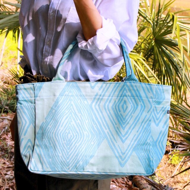 トートバッグ (M・サイドポケット付)「ミチ」_育てよう_ひし柄