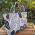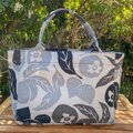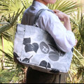 横浜の伝統技術である捺染(なっせん)製法を使って型染めをしたオリジナルテキスタイルを使い、職人の手によって一点ずつ手縫いで縫製しています。
