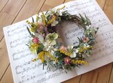 春待ちリース その名の通り春を運んで来る様な可愛い花々で作られており素敵なリースでした。
