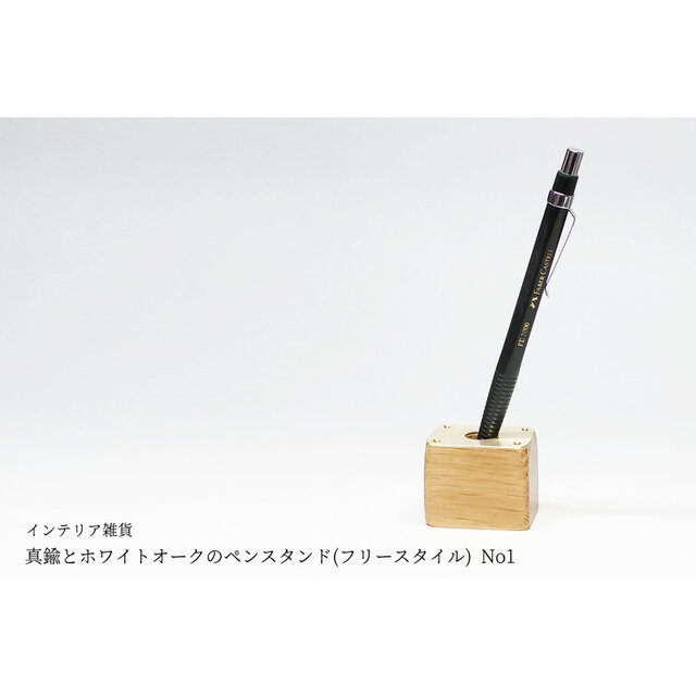 真鍮とホワイトオークのペンスタンド(フリースタイル) No1